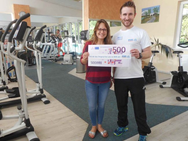 500 € Prämie 500,- Euro Prämie für erfolgreiche Weiterempfehlung! Freudig nahm unser Clubmitglied Nicole L. 500,- Euro von Clubchef Fabian Becker entgegen, denn Weiterempfehlen wird belohnt! Möchtest auch Du 500,- Euro bekommen, dann hol Dir Deinen Empfehlungspass und empfehle uns Deinen Freunden und Bekannten. Für jede erfolgreiche Weiterempfehlung erhältst Du dafür absolute Top Prämien. Ihr Sport-Studio…